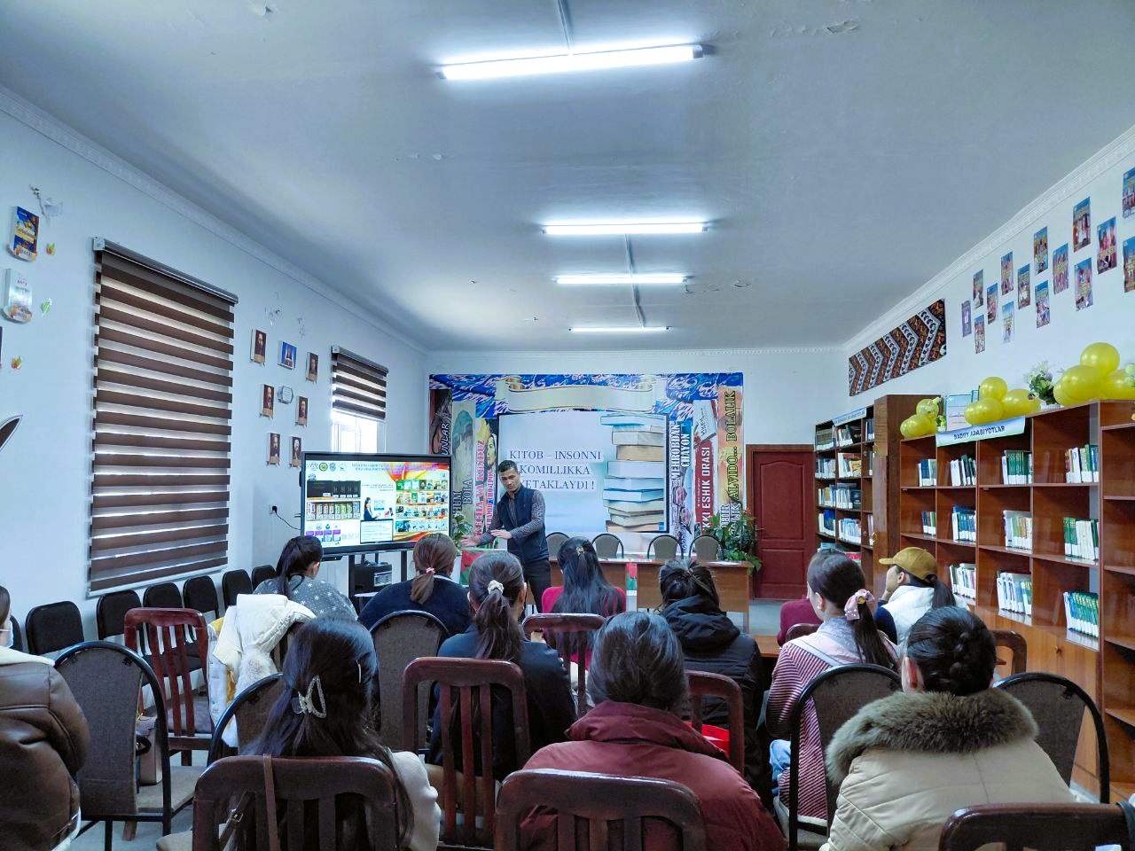 Mahallalarda kutubxona bazasidagi QR-kodli elektron kitoblarning targ‘iboti hamda kutubxona bazasi haqida ma’lumotni taqdimot shaklida va ko'rgazmali ko'rinishda yig'ilgan mahalladagi xotin qizlarga namoyish qilinib ma'lumotlar berib o'tildi.