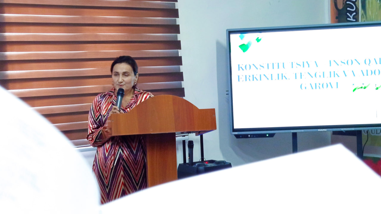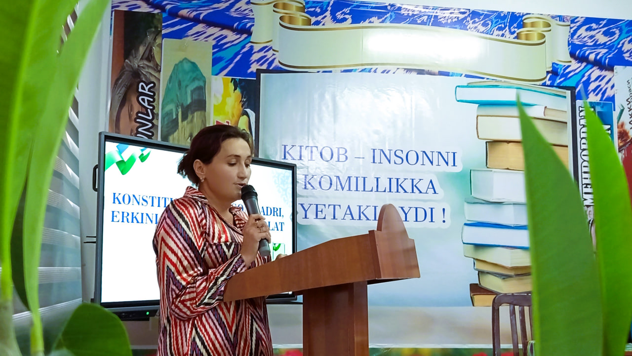 Tadbirni Axborot-kutubxona markazi direktori Xadicha Avezova ochib, Konstitutsiyamizda belgilangan tenglik, adolat va inson huquqlarining jamiyat taraqqiyotidagi o‘rni haqida so‘z yuritdilar. Ayniqsa, Konstitutsiyamizda ayollar va erkaklar teng huquqliligi, ularning siyosiy, ijtimoiy va iqtisodiy hayotda teng ishtirok etishiga yaratilgan imkoniyatlar alohida ta’kidlandi.
