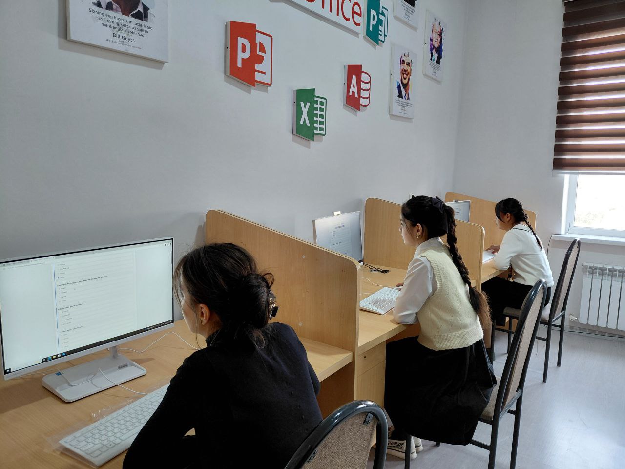 🌟 “27-maktabning zukko qizlari kompyuter orqali o‘z bilimlarini sinovdan o‘tkazib, yulduzli tunlardek porlashdi.”
