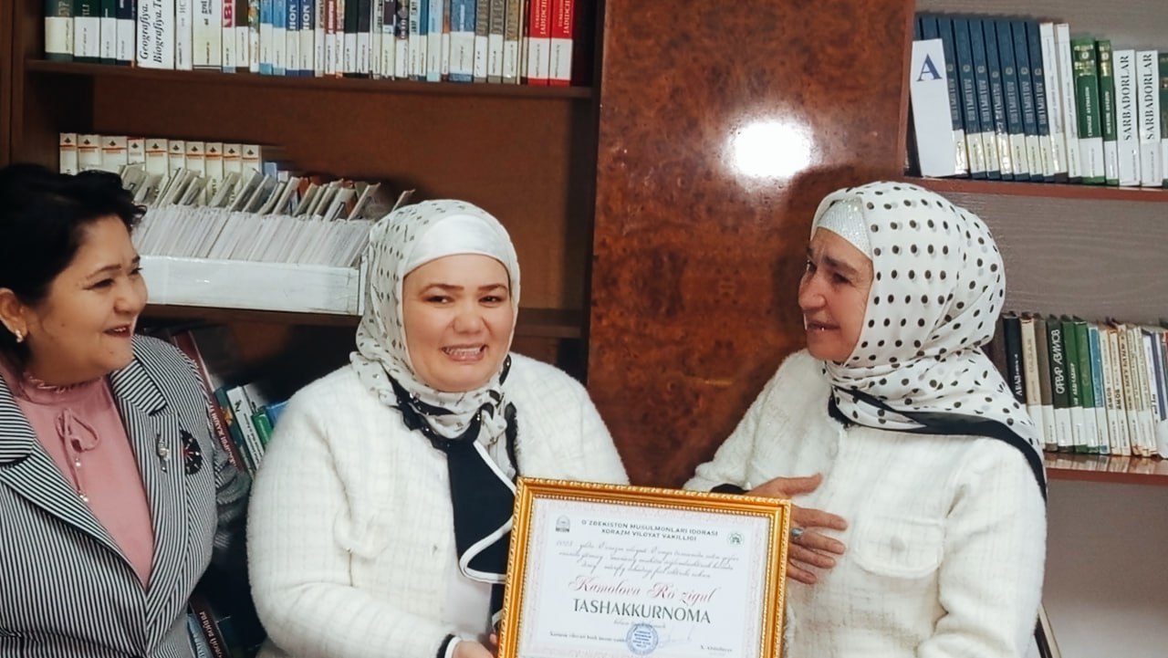 O'yinni Xonqa tumani bosh imom xatibi F.Matyoqubov, Diniy ishlar bo'yicha qo'mita hududiy boshqarmasi mutaxassisi M.Masharipova, Viloyatimiz bosh otinoyisi F.Otajonova va kutubxona direktori X.Avezovalar baholab borishdi.