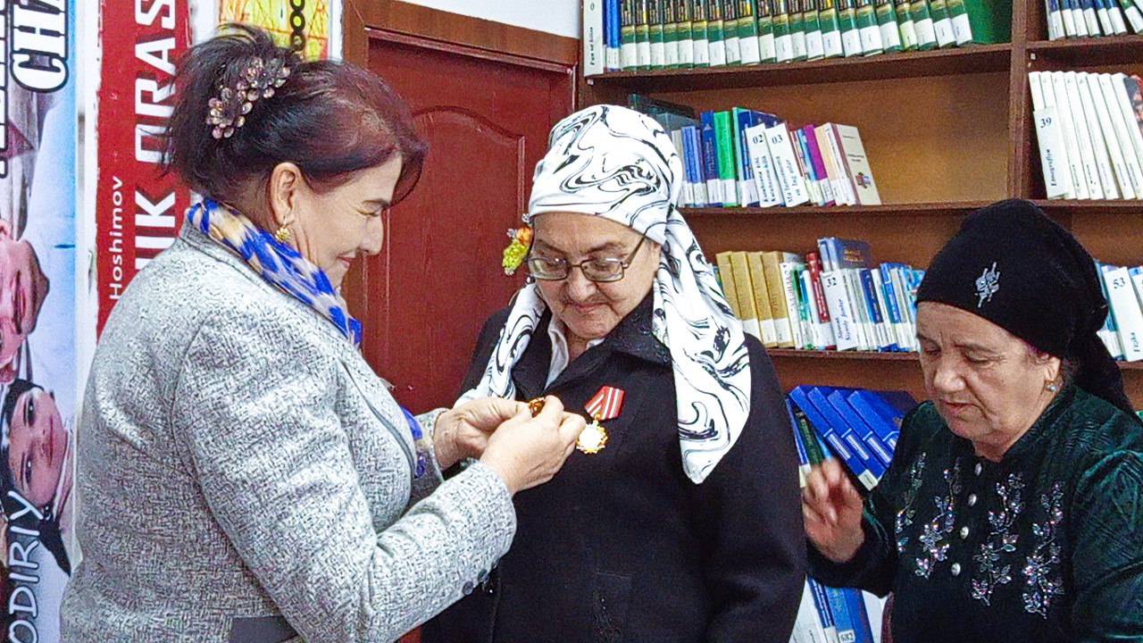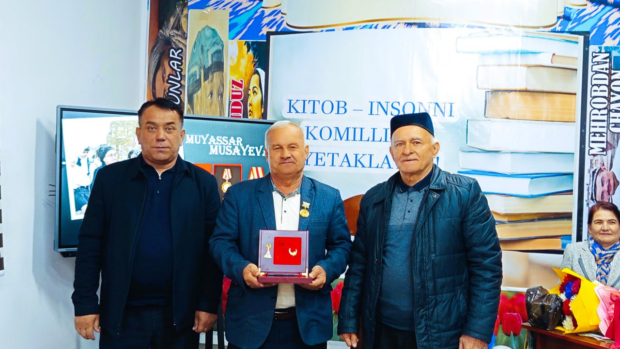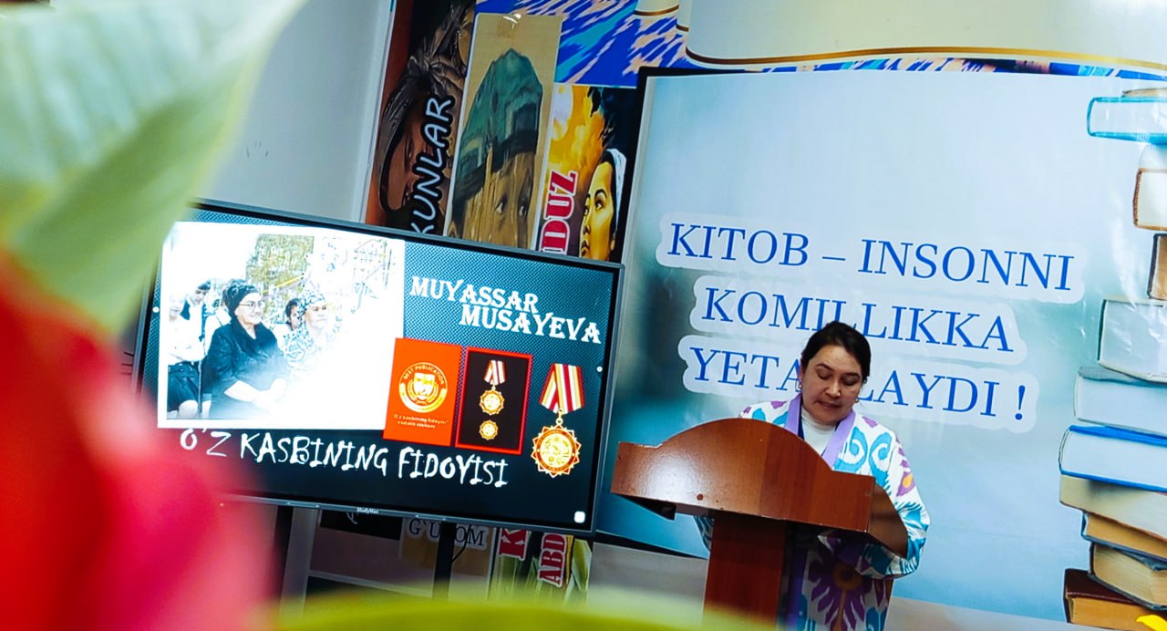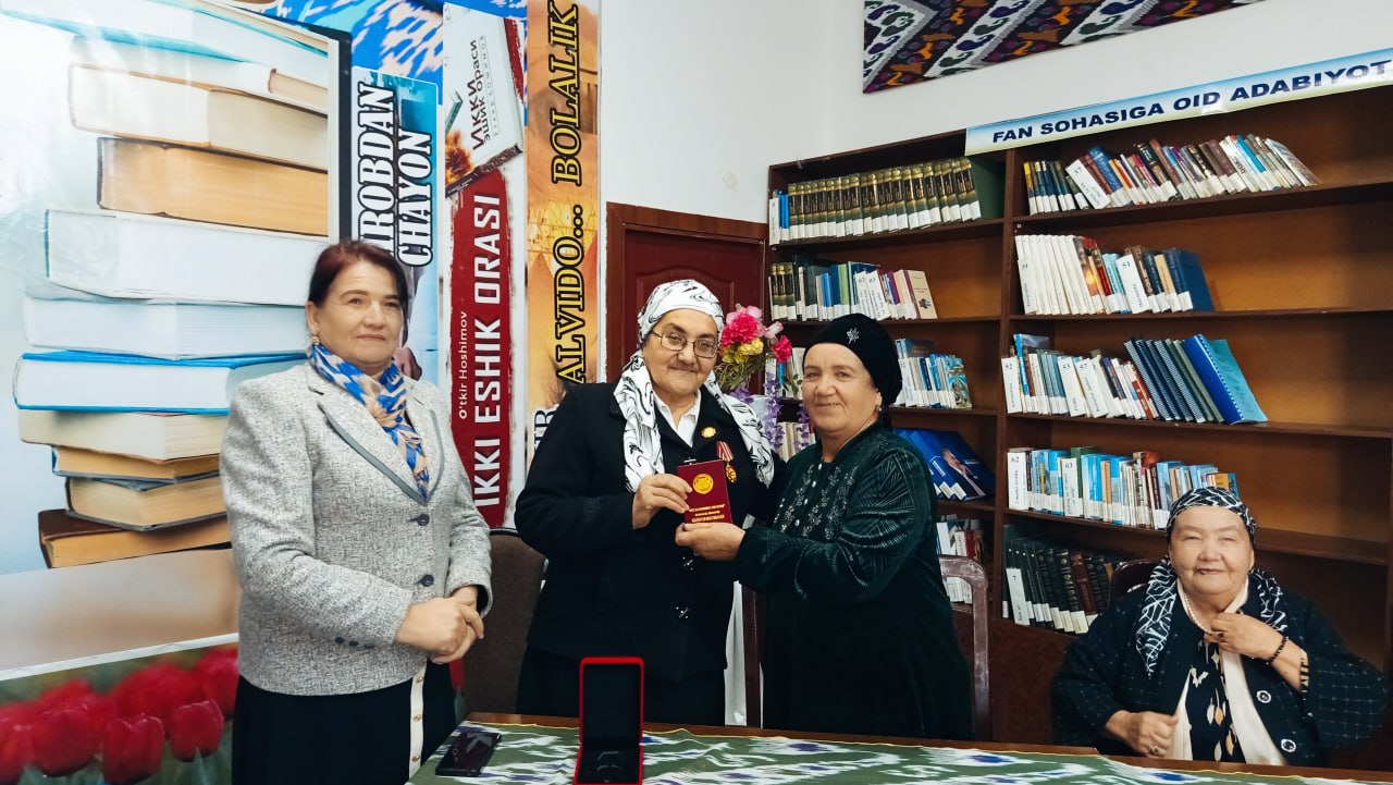 Tadbir avvalida uzoq yillar kutubxona sohasida fidokorona mehnat qilib kelgan, yoshlarga ma’rifat eshigini ochgan, o‘z kasbining chinakam fidoyisi bo‘lgan Musayeva Muyassar opa tantanali ravishda “O‘z kasbining fidoyisi” esdalik nishoni bilan taqdirlandi.
