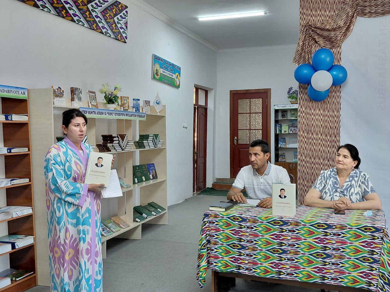 Siyosiy ma'rifat soati yakunida Xonqa tumani Axborot-kutubxona markazida, Xonqa tumani diniy ishlari bo'yicha tuman hokimi o'rinbosari D.Atajonov va Mahmud Zamaxshariy nomidagi Xorazm viloyati Axborot-kutubxona markazining metodika xizmati mutaxasislari ishtirokida XXR raisi Si Szinpinning o‘zbek tiliga tarjima qilingan "Inson huquqlarini ta'minlash va kafolatlash to‘g‘risida to‘plam" kitobi taqdimoti ham o'tkazildi.